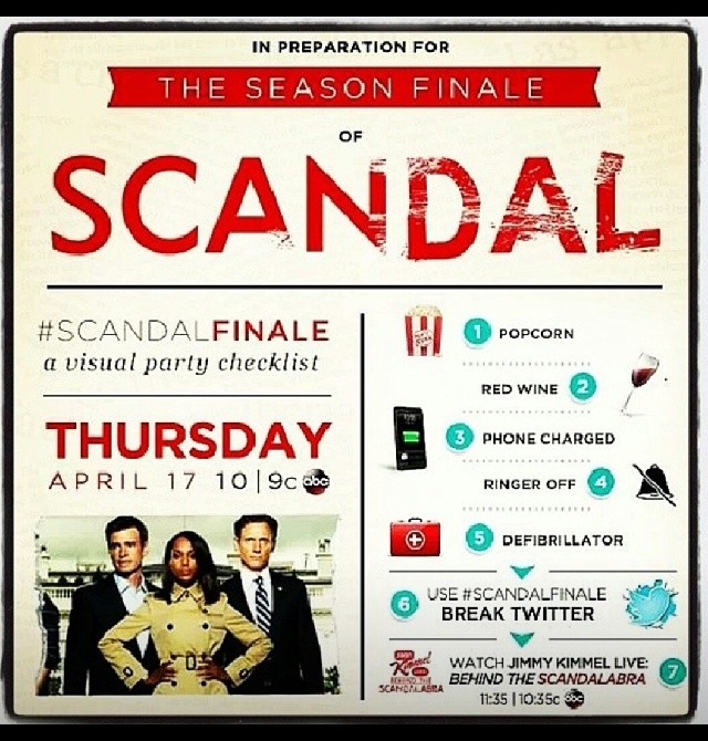 Ok Gladiators, it’s officially time for this season’s finale. I know you hate to see it end, but that is all the more reason to make sure you are ready. This visual checklist is designed to maximize your Scandal experience. What do you think will happen? Will Harrison get killed off the show? Is Sally going to blow up at the funeral? Oh, and let’s not forget about Mama Pope and all of her shenanigans. I can’t wait to tune in. I will be live updating from the Magic Facebook page, so make sure you are watching and commenting. In the meantime, check out this teaser for tonight’s show.