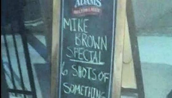 Social Media went crazy when a picture taken at a bar in St. Charles, Missouri (approximately 15 miles away from Ferguson) started to go viral. The picture was of a “Mike Brown Special” allegedly being offered for a 6 shots of something.
