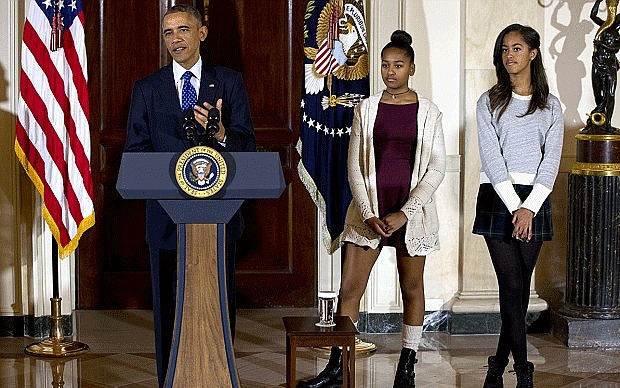 A GOP aide took upon herself to address Sasha and Malia’s appearance via her social media account. The photo was taken at a ceremony for the pardon of two turkeys on November 26th. Below is the tweet made by the aide. She says “I get you’re both in those awful teenage years, but you’re a part of the First Family, try showing a little class.” The aid went on to say, “Then again your mother and father don’t respect their positions very much, or the nation for that matter, so I’m guessing you’re coming up a little short in the “good role model” department.” “Dress like you deserve respect, not a spot at a bar.”